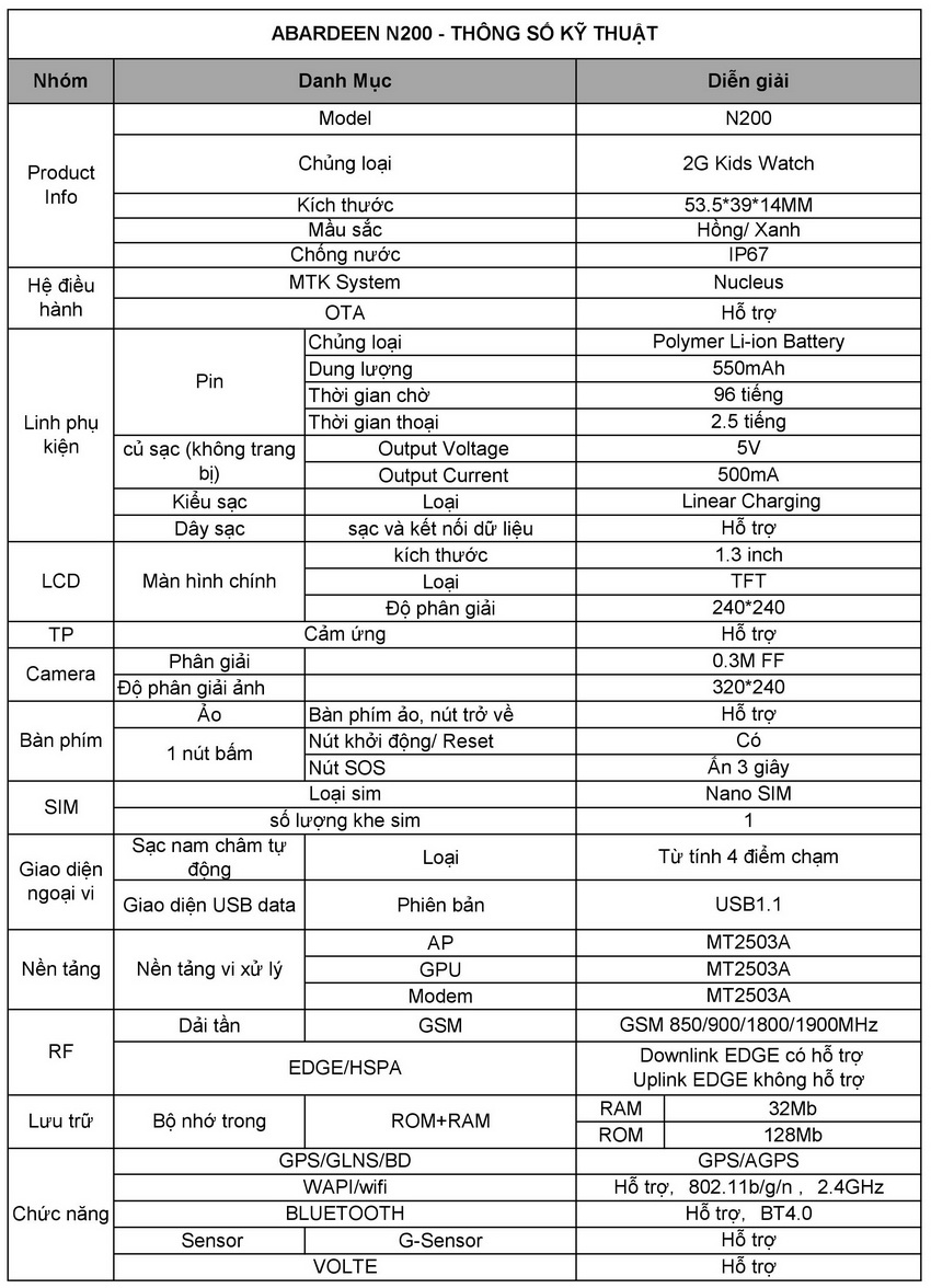 Abardeen N200 2020 (chống nước IP67) - Đồng Hồ Định Vị Trẻ Em Cao Cấp Chống Nước Mạnh Mẽ Nhất